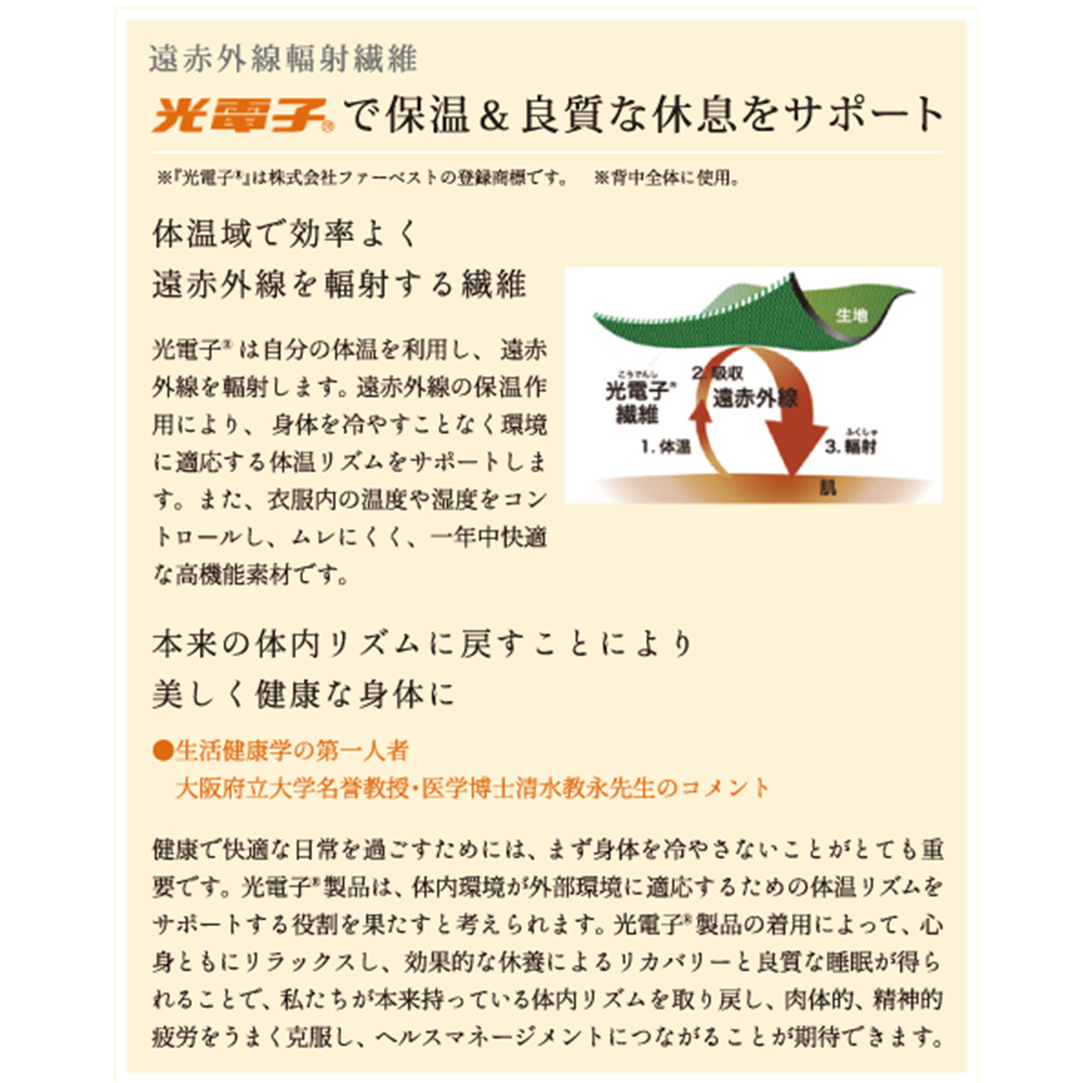 ③遠赤外線輻射繊維「光電子」で保温&良質な休息をサポート