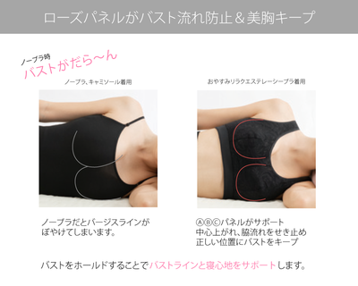 ①ローズパネルがバスト流れ防止&美胸キープ